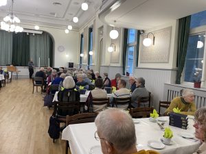 Mange deltagere kunne alle nikke genkendende til denne historiske gennemgang. Vi fik en hyggelig eftermiddag, og ikke at forglemme kaffen, med boller, og lagkage.