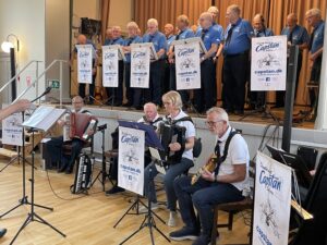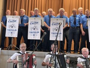 Ikke mindre end 30 korsangere og 5 musikere, fra det Esbjergentsiske Shantykor ”CAPSTAN” underhold en stor forsamling af medlemmer, til det sidste arrangement her i foråret. Det store kor, kunne med deres gode sangstemmer, og i ørefaldne, muntre musik, høres af alle i huset. Det var muntre sømandssange fra: Danmark, Tyskland og England, som var omdrejningspunktet. Med sange som: Fuglene letter mod vinden, Seemann, Nordsøbølger, og et slutnummer af Bruce Springsteen: Pay Me My Money Down, kom vi igennem et bredt repertoire.